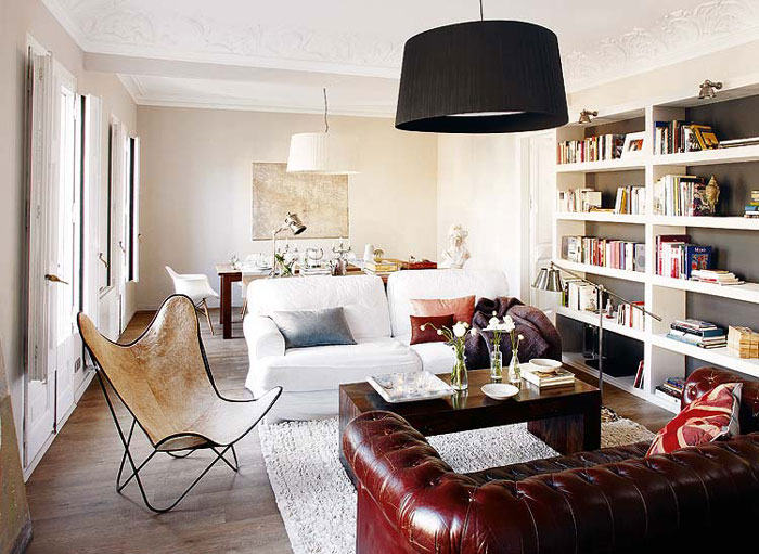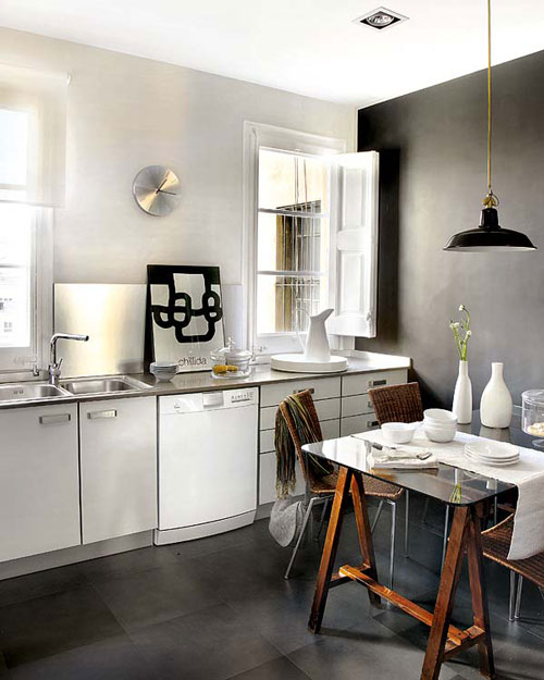Quite interesting pictures. I really like the interior design of the apartment. Even the combination of different styles doesn’t look bad at all. The bench for seating at a dining table is also interesting idea but I would definitely prefer something more comfortable.