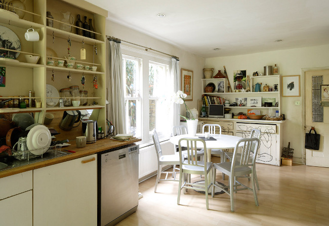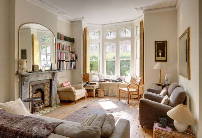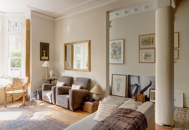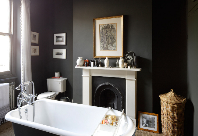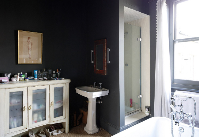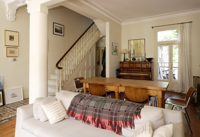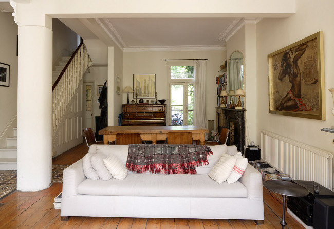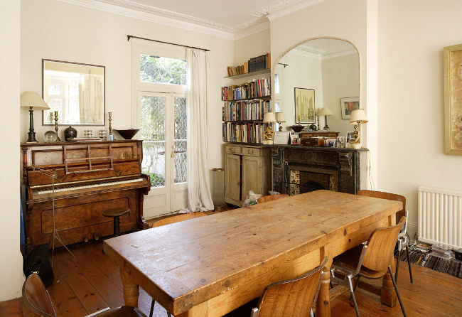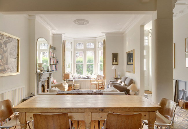 I love this house. I love the large rooms and wonderful light streaming in. I love the history, the architectural details, the old wooden floors, the dark bathroom with the tub as centre of attention, the art leaning against the walls, the old dining room table and believe it or not, the mess. Hallelujah a real house! There are dishes in the rack, shoes in the bathroom, the throw rug is not artfully draped and a pile of coats in the hall. This London house is from 1st Option locations. You see it warts and all. It can be perfect when the stylist comes to straighten and preen and the photographer to compose and crop. Any other time a family lives happily here. I wish it was me 😉