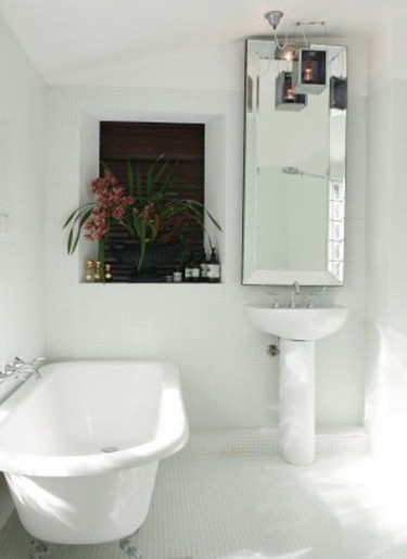 Nice fabrics, the white decor allows us to play with colors. I just loved that white bathroom and the huge mirror. Fabolous images….