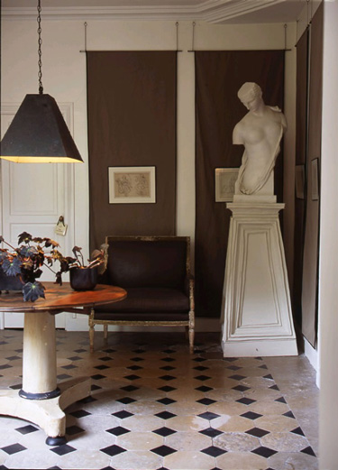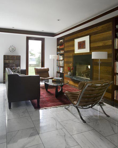 I finally had a chance to get to a reader request, and this one comes from Kristin: “My husband and I have a basement to floor. Due to an intermittently angry washing machine, we need something waterproof. We have decided that tile is be the best option. Do you have inspiration photos of tiled floors? This is going to be our second family room, so the tile can’t look out of place with sofas and pillows and dog beds.” I sure do have some tiled floor photos for inspiration to get some ideas brewing. (On a side note, one of my favourite durable flooring choices that I hope to be able to use in the basement of the addition my husband (teeheehee) and I want to put on our house is coin pattern rubber flooring like this).
