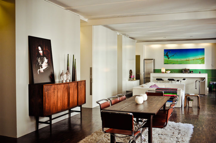 My fiancé and I spent the evening at my parent’s place getting the trailer put into place in the back corner of their acre property. (For trailer details check out her blog posts here). It looks TOTALLY adorable and is coming along quite nicely, especially after a coat of paint from my twin sister, and now that it’s off the driveway. My mom wants to have a little deck/stairs built out front of it and do some planting around it. I am hoping we can at least spruce the outside up a bit in the next 2 weeks before the wedding so we can get some photos in front of it. 🙂 That all being said (perhaps I’m rambling because we’re in day 4 or 5 of a ridiculous heat wave here and I’m lacking sleep) I didn’t have much time for blog stuff so I figured I’d just slap up some more photos from the lovely www.micasarevista.com. The first bunch are of a cool renovated apartment that is just the right amount of funky (hello brown leather chesterfield!) and vintage and comfy furnishings. The last 2 are of a gorgeous dining space (I love benches for seating at a dining table).