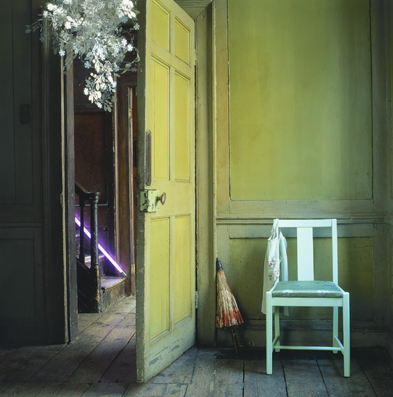 You can watch me fall off the stairs if I end up in the statue room, and get to live there. Wow. Some photographers get all the luck. Look at this stuff! From chair to lamp to sprawl of dog, everything is perfect, in its own way. I have to admit, it’s the picture of the neon strip illuminating the glorious wrec kage if a house that I like the most. — I love the glow captured behind the door. Although the empty picture hook *between* two circles of faded paint intrigues me! And I’m more determined than ever to find something to paint celedon.