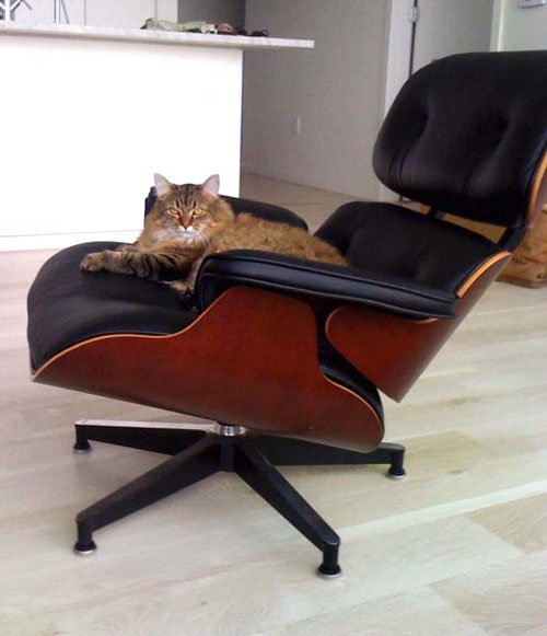 “My Maine Coon “Gabby” on our Eames Lounge.”