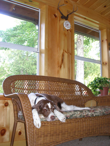 “There are a lot of critters in the Upper Peninsula of Michigan and as for the last 12 years our lazy lovable Brittney ‘Jake’ takes it upon himself to keep all of my grandparents’ property. Between his patrols he finds time to relax on the newly built front porch.”