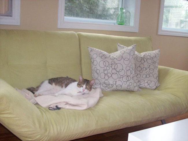 Our pets spend their entire days on our furniture! We have Ruby on her throne.