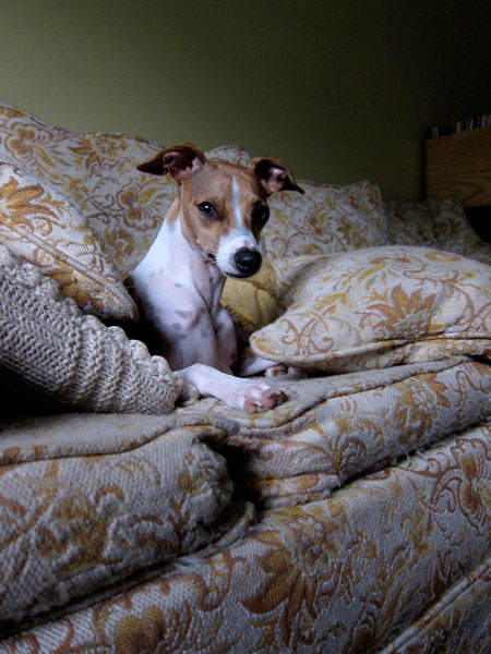 Bea Arthur looks so content to have found a nice lady with a nice white dog bed, er sofa, to rescue her!