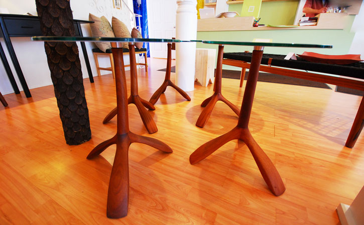 I was soooo excited to receive an email a few weeks ago from Deborah Peets, owner of a new furnishings shop here in Ottawa (who saw me in the Jan ’09 issue of Canadian House & Home). We are severely lacking in decent furniture shops here – we do not have all the very reasonable priced shops like C&B, West Elm, Urban Outfitters, etc. etc. We have an Ikea. And EQ3. And that’s about it. Every now and then a funky shop pops up in Westboro or downtown and I can hardly contain myself. Now, these shops are likely where you will find investment pieces that you’d want to keep for a looooong time, and Green Light District Design is one of those shops. Here is what Deborah had emailed me about her shop (www.greenlightshop.ca): “Our aesthetic is clean and contemporary; our pieces from places like Buenos Aires and Cape Town are made of natural materials – leather, wood, parchment, cord, reclaimed cotton. The best part is we get to know the designers and artisans personally, we touch and try every piece before we commit. All our furnishings and accessories come from small production, designer owned companies; all have significant hand made component and the highest level of craftsmanship.” My new hubby and I were in awe right when we walked in. It’s just one amazing piece after another. I managed to pick out a few small things that I HAD to have, and hopefully one day when Jeff and I are done with our house additions I’ll be able to walk in there and pick out a piece of furniture (or 5) when we actually have some space. If you’re strolling around downtown Ottawa, be sure to take a walk down Dalhousie St. and stop by Green Light District Design – Deborah and her husband David are super sweet, they can tell you the stories behind all their finds, you’ll likely walk away with some gorgeous treasures, and while you’re in there, look up. A jaw-dropping restored tin ceiling is part of the shop.