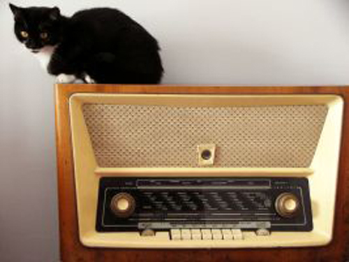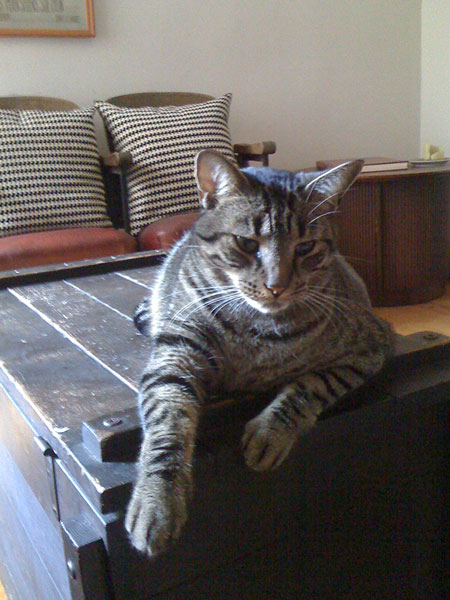 “here is my cat Miko on our vintage furniture.”