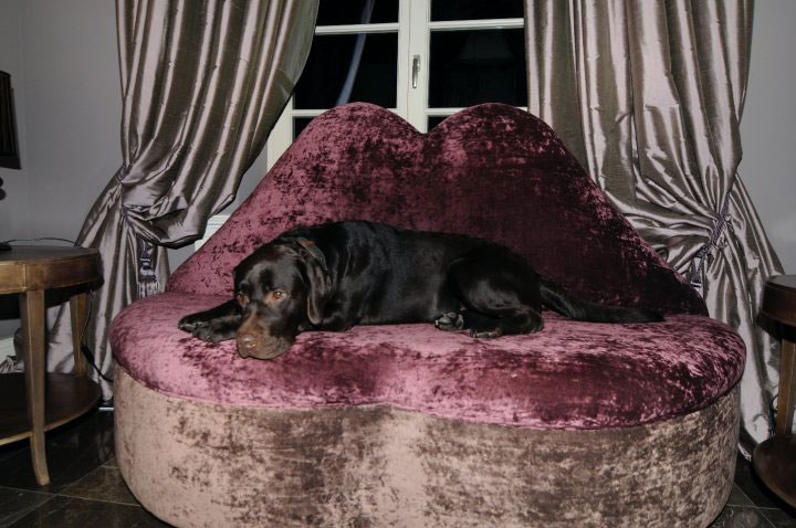 “This is my Labrador who’s named Marron. He is sitting on the copy of “Mae West Lips Sofa” by Dali. We chose these colors for the padding because they fit better with the atmosphere of the room.”