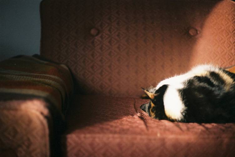 “Shiraz curled up on our vintage chair.”