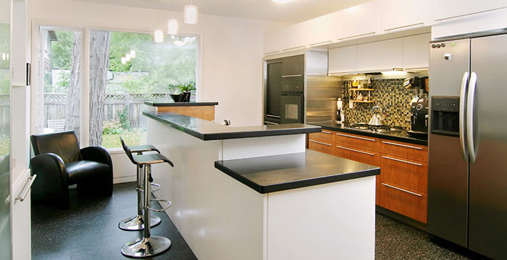 Tore down the wall in the kitchen opening it up to the living room and dining area.