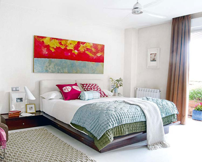 I would never have imagined it of myself, but I quite like the living room in this post. I find that the mix of warm leather and wood, along with the painting and dark pillows, make the pastels richer. It has a very elegant feel…and I would love to have a chair like that wonderful leather one to curl up in.