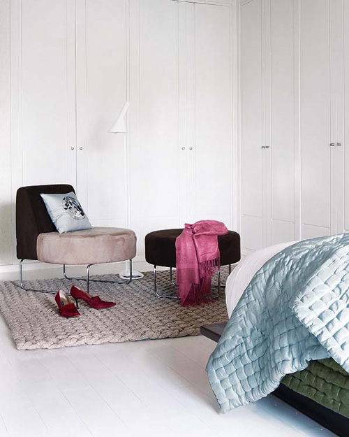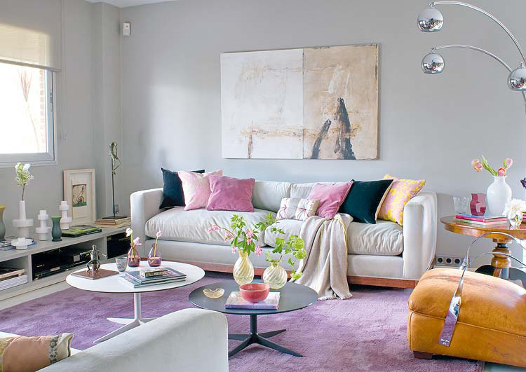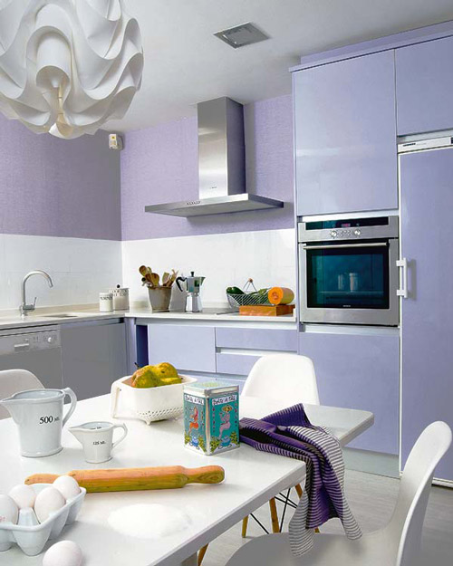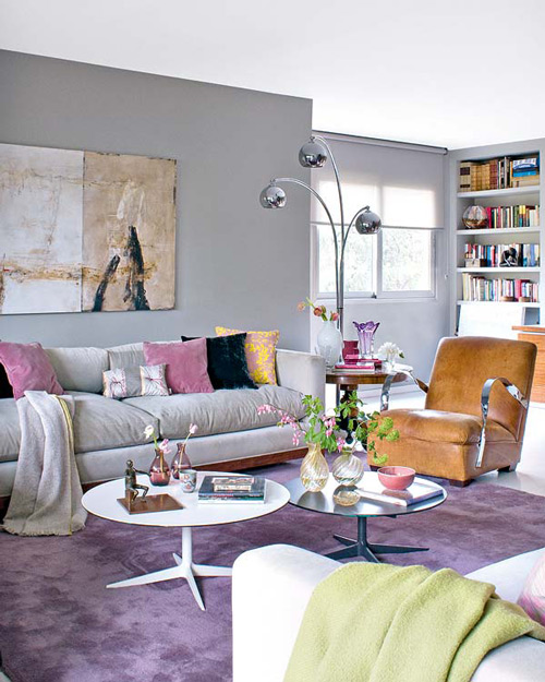 There is a problem with this blog. All of this eye candy we feature has the effect of making people change their minds over and over again about what sort things they like in a space. I for one am not a big fan of pastels, particularly purple/lavendar. Then I go and find this gem of a home on Micasa and I now think purple is not that bad. I kind of like it (although the living room rug could be a bit more interesting) – especially with all the grey walls, which has been my favourite wall colour for ages. Maybe you’ll change your mind about using pastels when you see the wonderful photos below. (Happy Friday!!)
