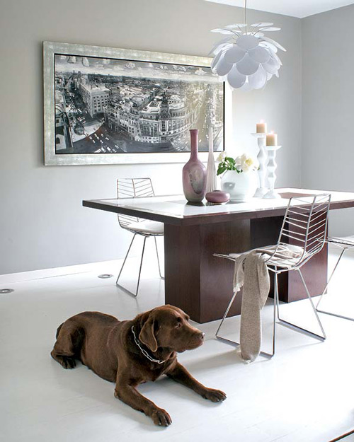 i like pretty much every room except for the living room. something is off there, in addition to the color… but that is one super cute dog!!