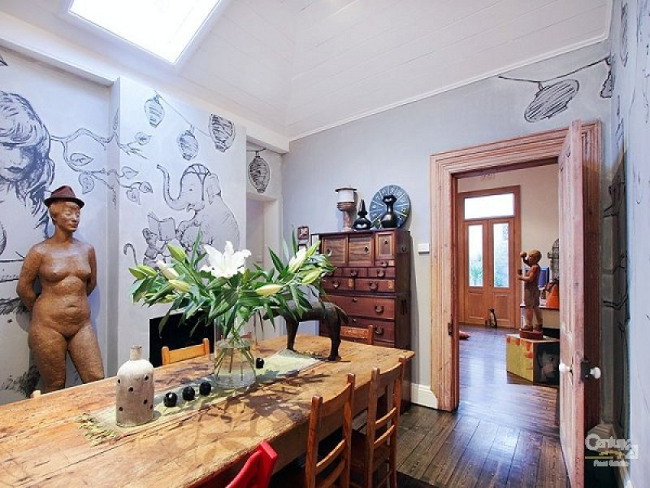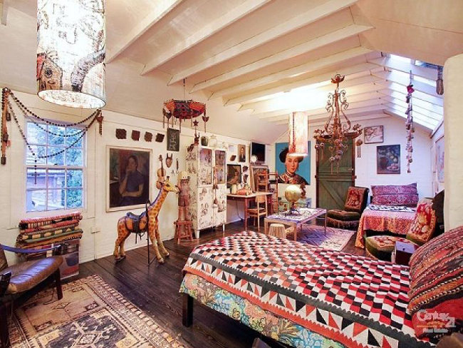 The artist is famous… and successful. The artist has an enviable home. Historical yet quirky, stylish and lived in like a pair of expensive handmade Italian moccasins too well worn to wear out and about but you can’t help yourself. When the walls aren’t adorned with wonderful paintings they are tattooed with whimsical murals. I want to grow up to be just like the famous artist then I could afford to buy his quirky home. Maybe he’ll just let me live in the converted stables until then. Link here while it lasts.
