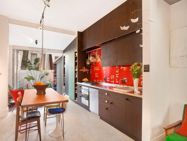 How cute! How clever! How tiny! Stalking and found this Surry Hills, Sydney terrace. From its bright exterior to its Grant Featherston chairs and vivid green floor, I just want to pinch its chubby tiny house cheeks and kiss it. Definitely stealing that splash back idea. Oooooooooh you little cutie!!!! I just wish there were more pictures. Aussie design mags please do a feature before it’s sold 😉