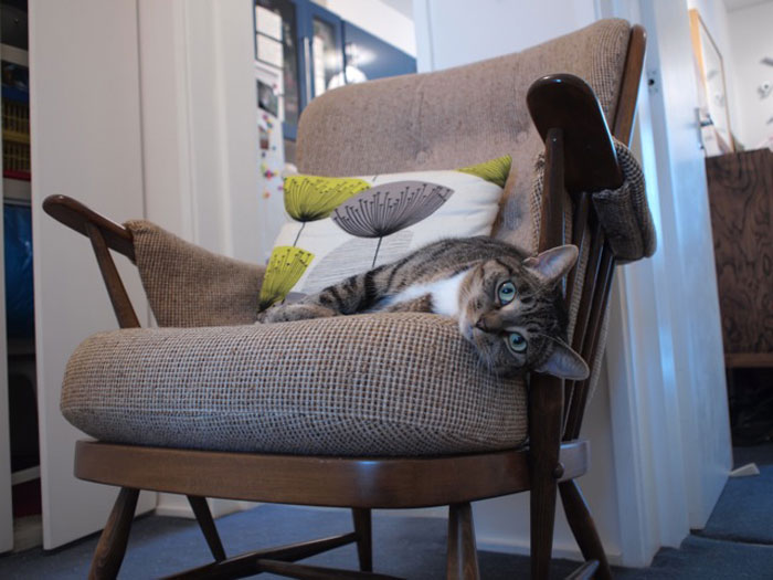 “Lily thinks she is the Queen of England and just loves to sit on her Ercol Evergreen throne where she can survey her kingdom. It’s a hard life!”
