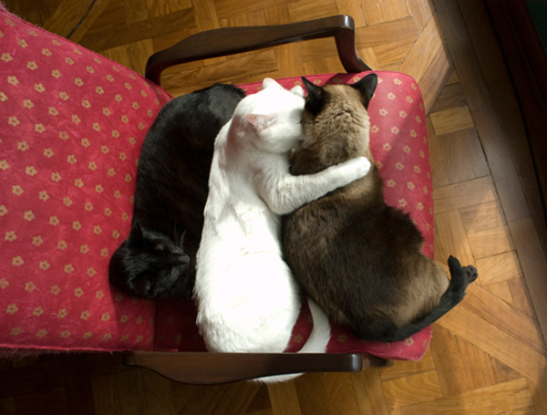 “We have four cats and each one has its favorite place in the house, like Clarita “on the safe highlands” and Biancchino in the drawer. But sometimes some of them get together for a nap in our vintage armchair.”