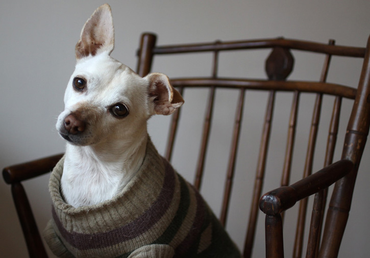 “I’ve been meaning to take some shots of my Chihuahua Pete on various furniture for consideration of your Pet’s on the Furniture feature – in the last few shots he’s on an antique dining chair.”