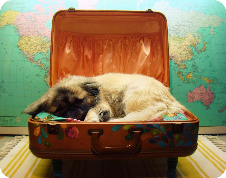 “Here’s my dog Chewbacca on a suitcase-turned-petbed I recently made.”