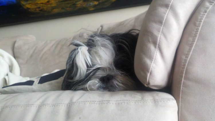 2. My shih tzu, Molly, resting in her favorite spot on our sofa.