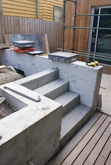 Again the devil is in the details and even the children’s wardrobes are full height gloss metallic white, orange anodized handles with drawers graduated in ‘flavors of green’ and internally the wardrobes are pomegranate in colour for the wow factor. Next week the floors are to be sanded and stained deep brown, commencement of joinery installation and the coloured grouting of tiles has just begun (mixing paint base to white oxides) to achieve matching grout to tiles colour… great tilers! Beautiful steel screens installed to the face of the staircase stringers are finished in bronze wet-spray and will provide a backdrop to the living room wall. Santas helpers are working overtime to ensure the Client has the house pre-Christmas so that they can settle in and enjoy their new home over the January holidays.
