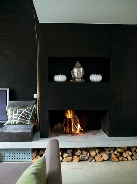 There are so many dramatic touches of this house. I love the tiles, the wood floors, the big fireplace lower mantel. So pretty.
