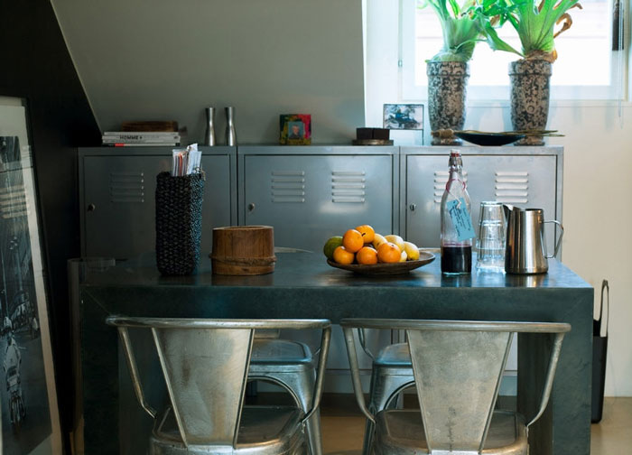 Dawn: The brand of the chairs is Tolix (www.tolix.fr), you can get them in alot of places here in Sweden for about $300 a piece.