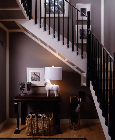 I love, love, love the paint color in the entryway/stairwell. It's exactly the color I've been looking for to paint my living room. Is there any way to find out what that color is?