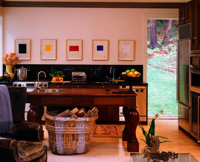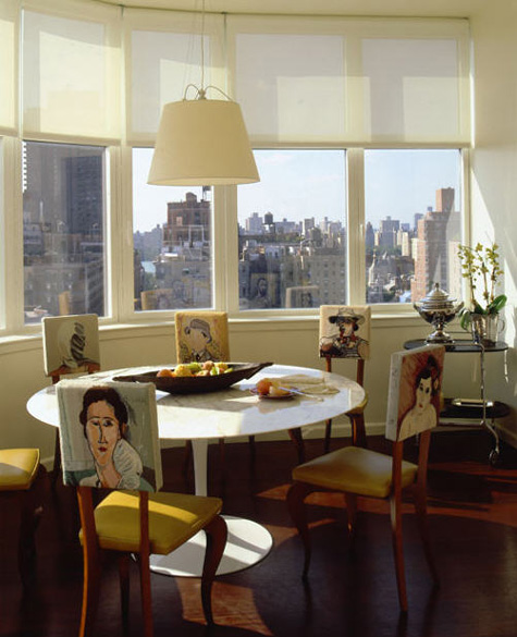 The " fantastic " needle point chairs were designed by the owner of the apartment in NYC.