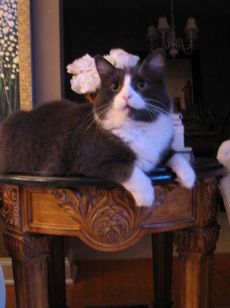 This is a picture of our 1 and a half year old cat Duffy sitting on a marble top side table.  He really thinks he owns the place.  And I’m starting to think it’s true...”
