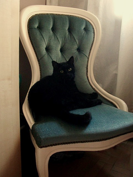 I love my vintage chair and my cat who is always hungry. I’m sure he was also when I was taking this picture..