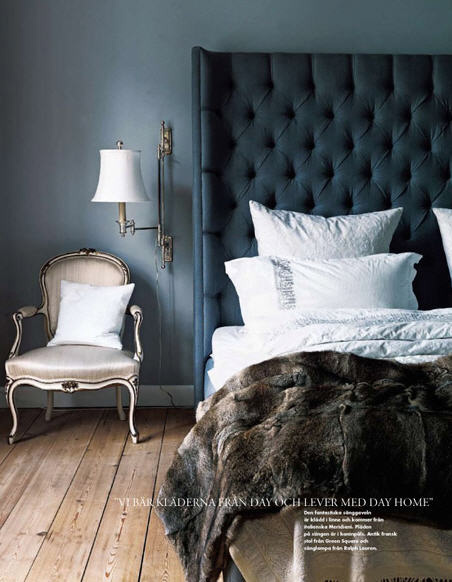 In love with the huge black mirror and dark bedroom with the tufted bed- and the amazingly perfect Mouille light as well of course:)