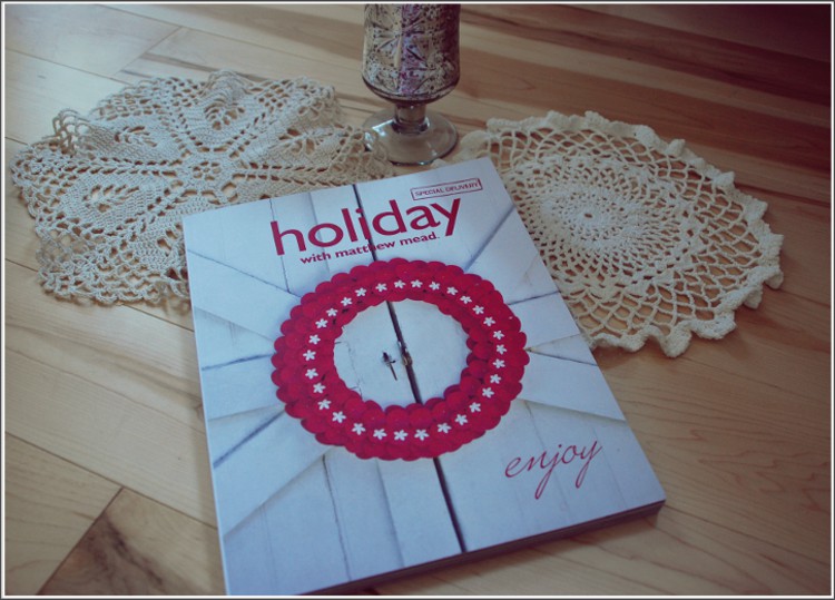 Christmas is right around the corner and I have been desperately trying to get as much of my Christmas shopping done as early as possible, and online because I really hate fighting the mall crowds. (Etsy, how I love you). And speaking of Christmas and online shopping, if you haven’t already ordered Matthew Mead’s Holiday book-azine WHAT ARE YOU WAITING FOR?? Mine arrived in the mail a couple days ago and it’s SO gorgeous! I’m going to have this out on my coffee table every Christmas season as part of my decor. Not only is it full of fabulous photos of spaces all dolled up for the holidays, but it’s got decorating projects and recipes and a feature I mentioned way back in April about a select number of bloggers (including Jo and I!) and their holiday projects. Here is a sneak peek of what’s inside…
