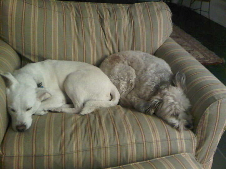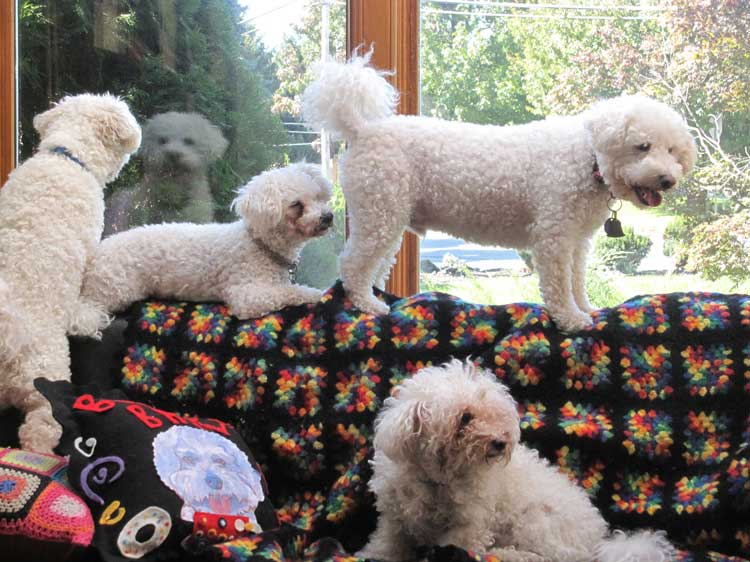 “These are my friend Joanne’s bichons on the sofa in the family room.”