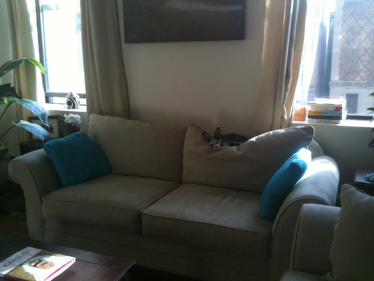 “This is my dog, Garcia, having an afternoon nap in our Brooklyn apartment. The couch, and Garcia, have moved with me four times during the last six years.”