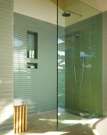 I really love the wood on the rectangle table. What is it? The chairs are just perfect. Could you tell me who the manufacture is. What a great selection of materials for all the spaces. The shower is beautiful glass pieces? Is it hard to keep clean?