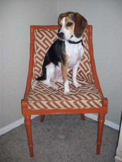 “Meet Oliver, my 3 year old beagle. This chair was a do-it-yourself project I tackled and Oliver decided he wanted in the ‘After’ photos. The chair has found a home in my bedroom and Oliver still likes to think it’s for him.”