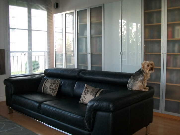 “I send you a picture of my new black leather sofa, with my little yorkshire Calinka who has found the large armrests are very comfortable and likes to jump on as soon as possible. So she can look on the front door.”