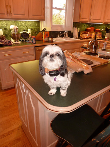 “I walked in the kitchen and found my sneaky 3-year-old shih’tzu, Lulu, on the kitchen counter!