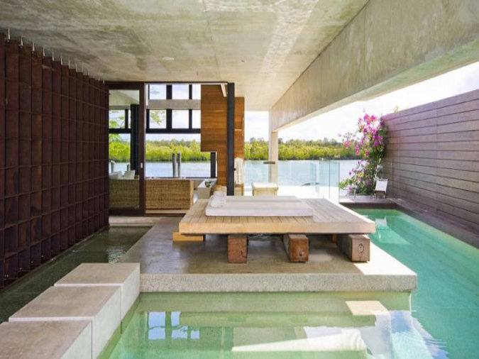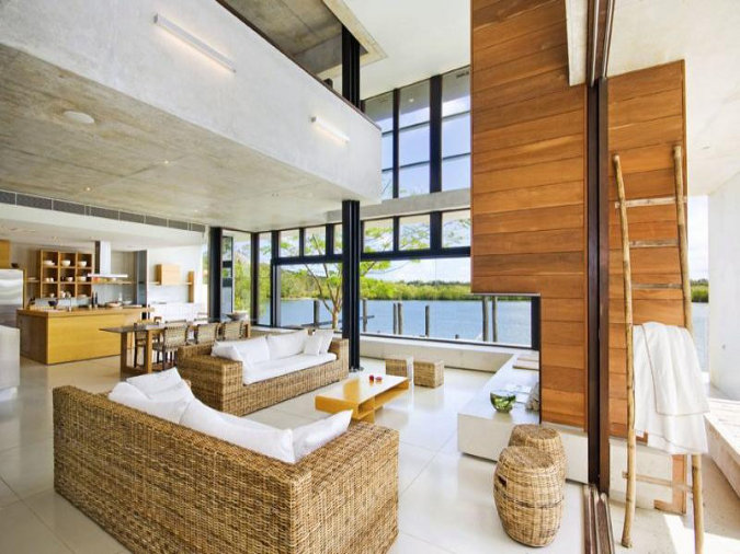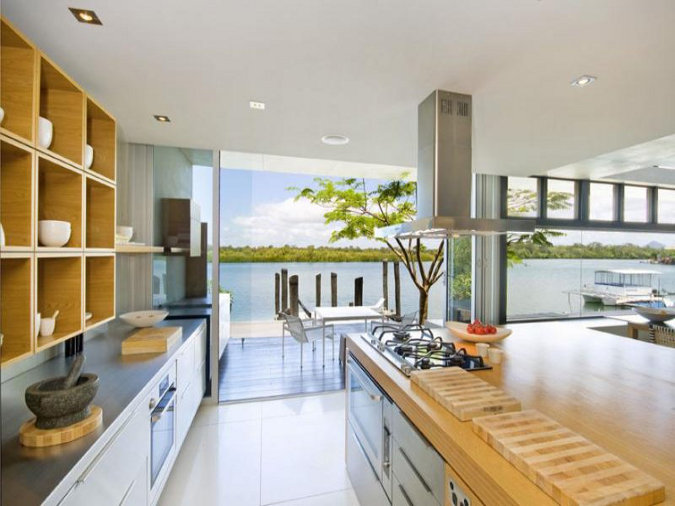 A little beach side shack would be perfect at this time of the year (remember it’s summer here in the land of Aus) and after Kim’s post yesterday I thought I’d share another shack I found while real estate stalking. Somehow I don’t think you could call this Sunshine Coast waterfront home a beach shack though. Minimalist modern lines with hard edges but loads of luxury. The public areas are particularly appealing. Imagine that view as you rinse the dishes (if you ever do rinse your dishes). The architect is Frank Macchia and the real estate link here while it lasts.