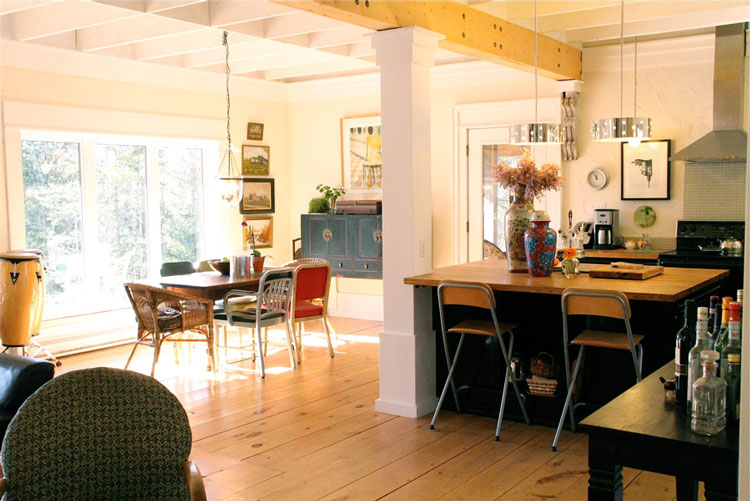 Here is an email we received from Sue: “I’m writing because I wanted to show you a home created by two of the most creative, eclectic, quirky and capable people I’ve ever met- my Mom and Dad. They have recently finished their fantastic house near Bancroft, Ontario; a house they designed, built and decorated almost all by themselves. And what’s the first thing they did when it was finished? Put it up for sale, of course. There are more home design projects ahead! This is the link for the webpage they created for potential buyers.” This is pretty much my dream home. SERIOUSLY. It is absolutely gorgeous. The spaciousness, the cabin feel to it, tons of WATERFRONT land, the large plank pine floors, a bunkie (!!!)….I could on and on. Instead, I’ll show you a whole bunch of photos of it so you can see what I mean.