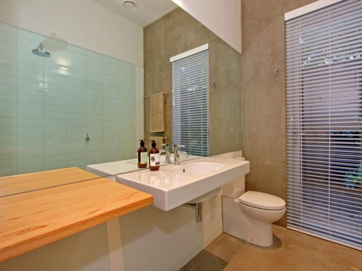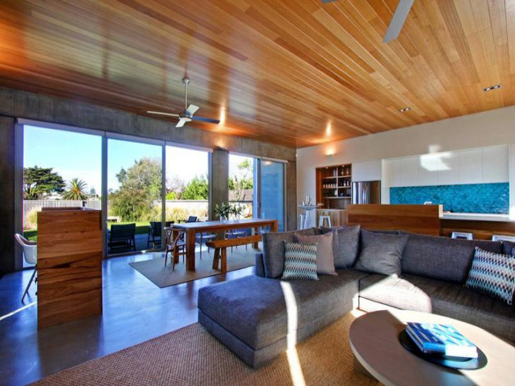 love it, clean lines, uncluttered. just what you want from a beach house. I really like the concrete walls and floors.