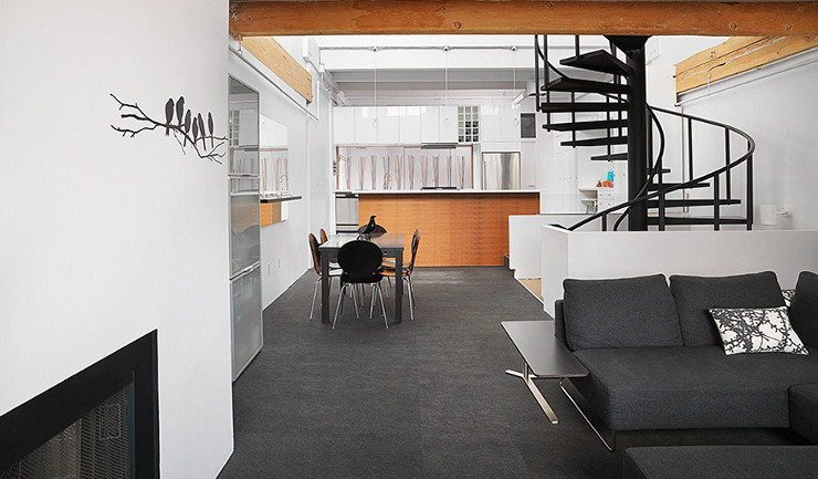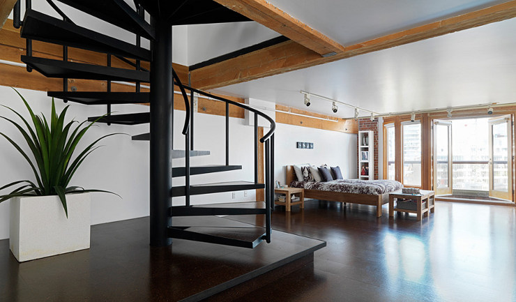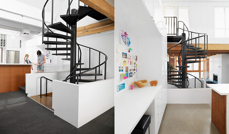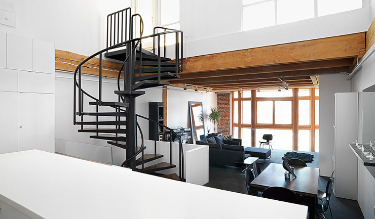 Spirally into love here folks. Love the open space, the white mixed with wood and black. Rustic and modern and all tied together with one sexy black spiral staircase. Clever sliding walls define the children’s sleeping areas. The Crosstown Loft by Campos Leckie Studio based in Vancouver, Canada.