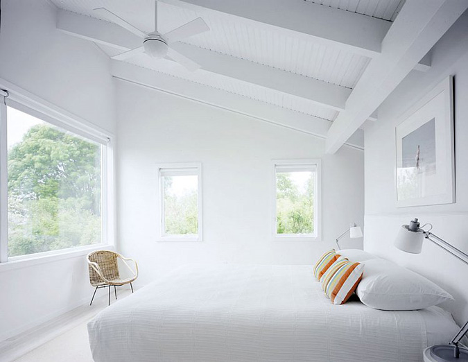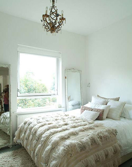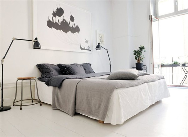 Today’s reader request comes from Jenny: “Hi, can I do a request for a post on beds without headboards? I just got rid of my giant, oppressive headboard and I’m trying to style my room with my bed having just the Hollywood frame, but I need some inspiration. Thanks!” I too am a big fan of the simplicity of headboard-less beds and my bedroom is currently sporting this style. These photos should hopefully give anyone currently new at the headboard-less bed situation ideas on how to spruce up the bed without a potential monstrosity behind the pillows stealing the show.