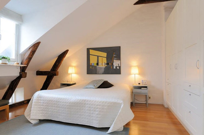 I suffer from tiny room syndrome but didn't want to give up the king-size bed. Doing without a headboard bought a few important inches. Instead, I covered stretcher frames with fabric and hung them over the bed, http://www.flickr.com/photos/sandiv999/3035467299/in/photostream/
