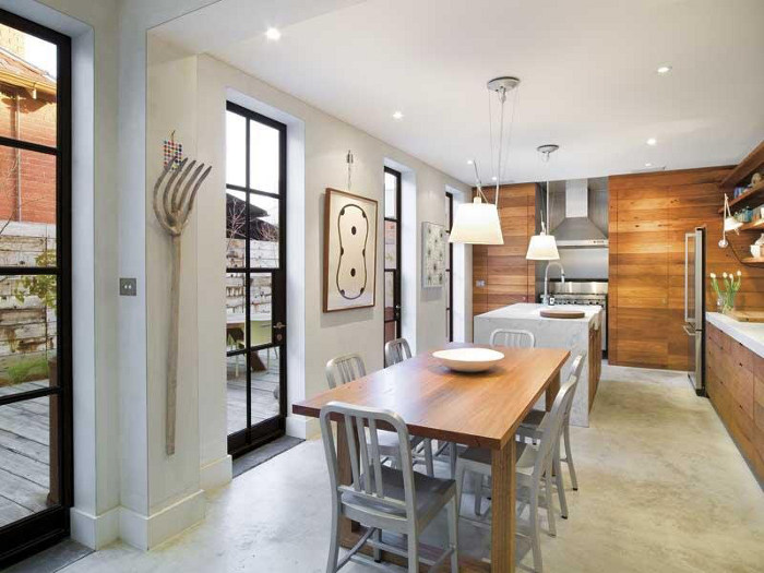 I often drool over the photos on Mark Tuckey's website! He is probably my favourite Australian furniture designer and I love how well his stuff sits with Eames chairs etc. We are building a new house ATM and this was the inspiration for our kitchen – island bench lining up with the dining table in the same way! I love the use of yellow with timber and the red front door of course!! Gorgeous 🙂
