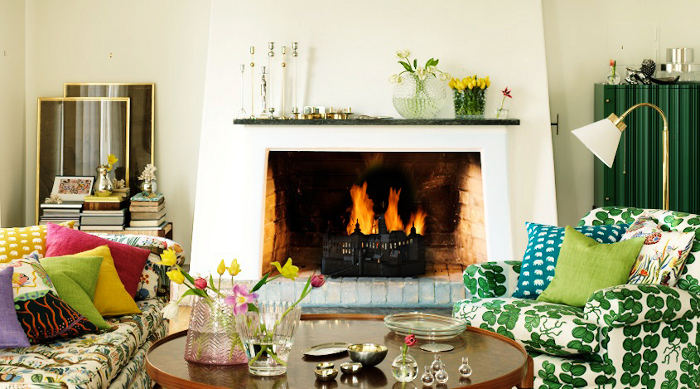Love this – especially how easily this space went from holiday-ready to ready for spring! A few punches of color that all seamlessly come together! Oh what'd I give to have a nice cozy fireplace!