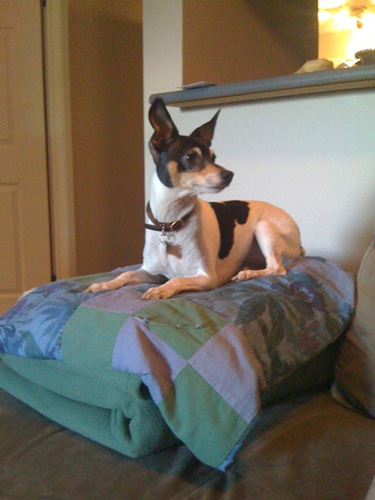 2) Miss Mini on a stack of blankets on our huge, comfy couch. Miss Mini…uh, I mean…The Princess and The Pea.