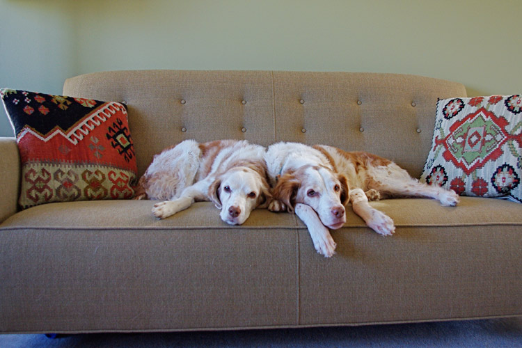 Our fourteen year old Brittanies, Ruby and Kiki, spend so much time on this sofa that I can count the number of times I’ve sat on it on one hand (and we’ve owned it for years!).